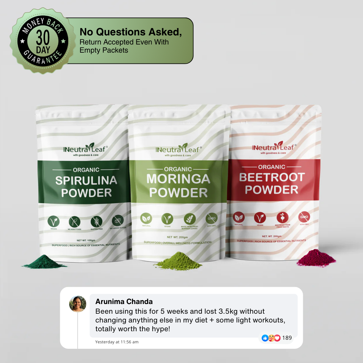 "Neutraleaf have made my life so much easier, i can't believe how effective their beetroot powder is"
